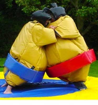 Hire includes 2 sumo suits, 2 helmets and 1 large padded mat (mat approx 10 x 10ft).