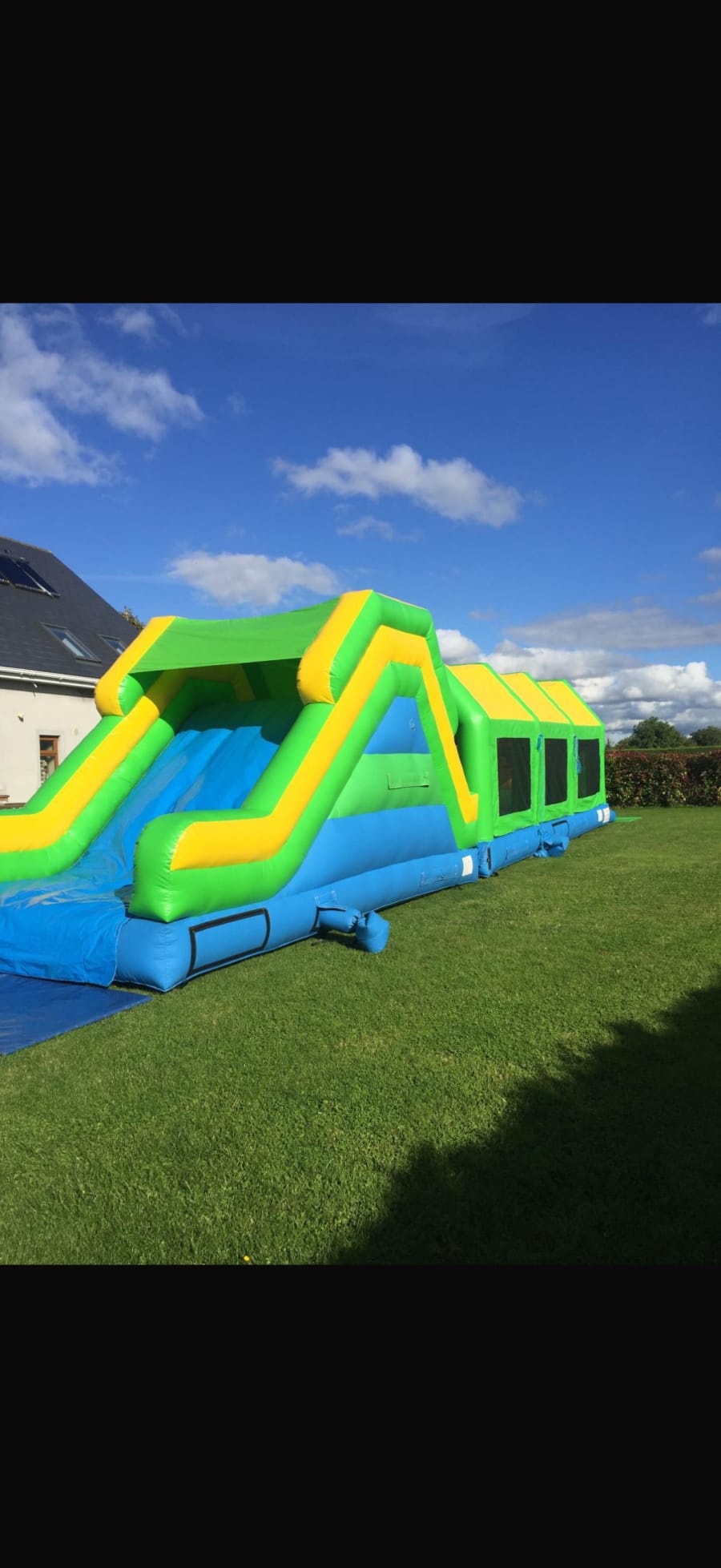 Large Inflatable Obstacle Course that has it all! Climbing, crawling, squeezing, bouncing and an 8ft platform slide to finish.